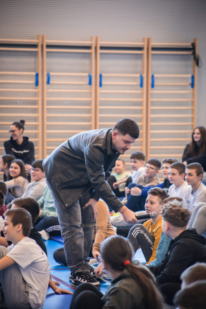 Dana 27. veljače u našoj školi gostovali su Vedran Kantar (Vjeverić), Andrea Pacadi, Mirsad Kadić i Ana Budimir, mag.act.soc., voditeljica socijalnih usluga Centra za sigurniji internet Osijek, u sklopu projekta Gen Z Akademija – jedinstvenog edukativnog programa namijenjenog učenicima koji odrastaju uz društvene mreže i digitalne platforme. Predstavnica Mood Medije Lamia Belošević bila je ujedno i koordinatorica projekta.