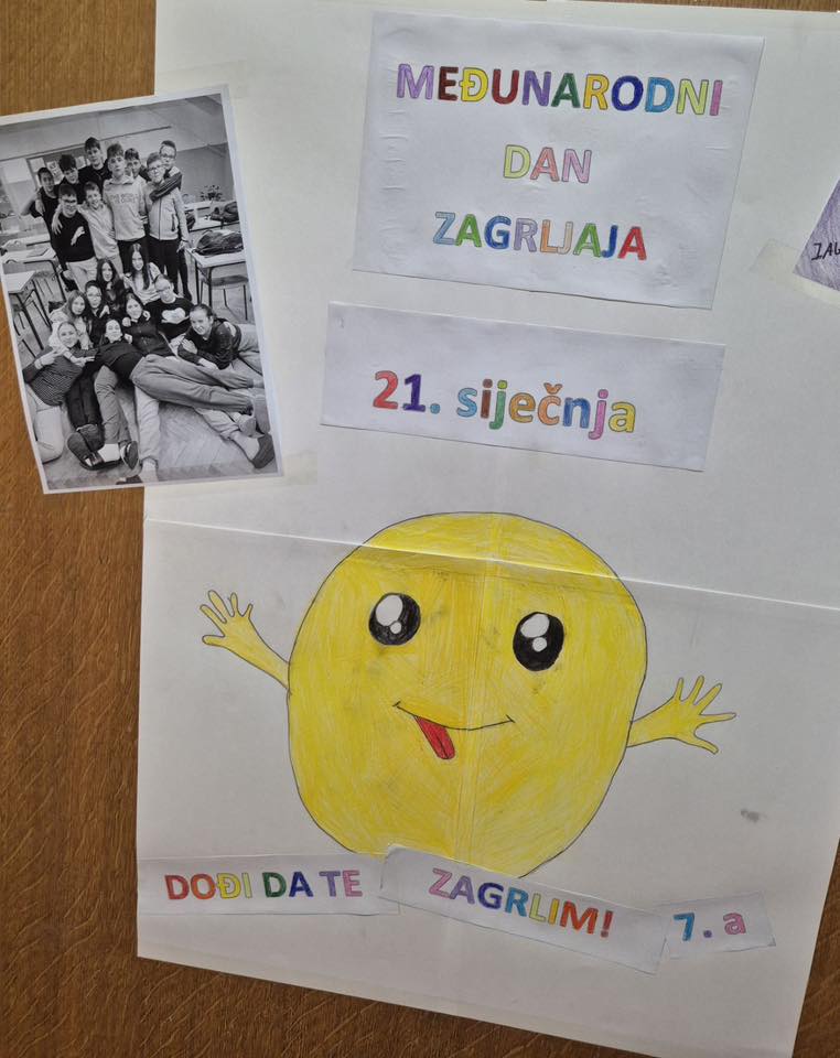 Učenici 7.a razreda na satu razrednika obilježili su Međunarodni dan zagrljaja! Danas je domaća zadaća zagrliti svoje najbliže.