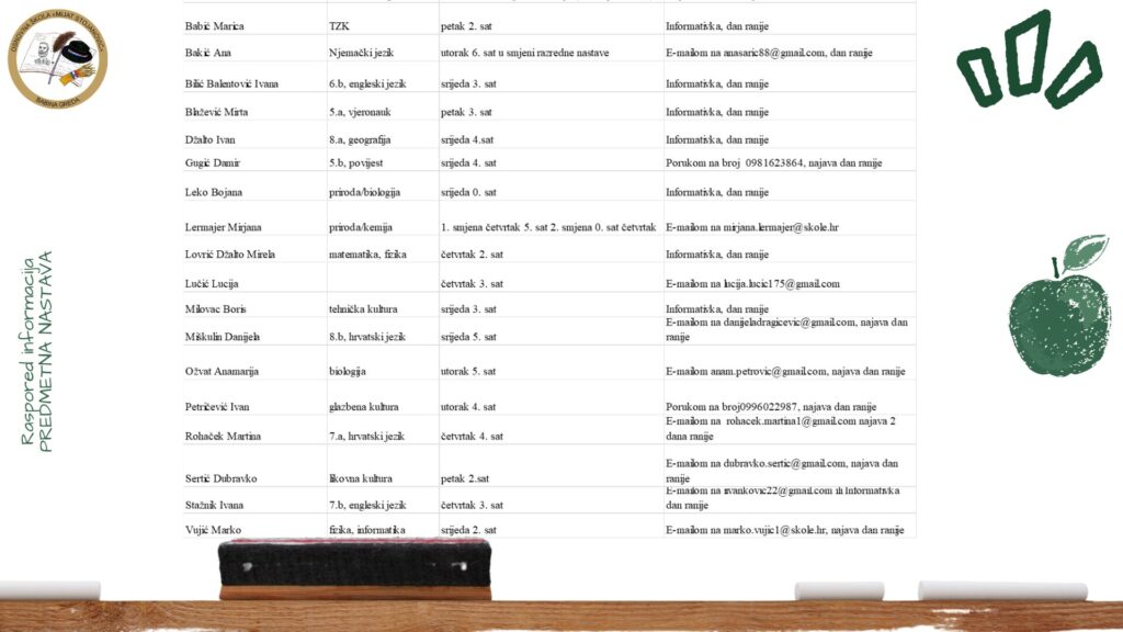 Sukladno Protokolu i mjerama postupanja zbog sigurnosti učenika i nesmetanog odvijanja nastave, roditelji i stranke ulaze u Školu u dogovorenom terminu sastanka ili uz pravovremenu najavu i evidentiranje u knjizi Evidencija