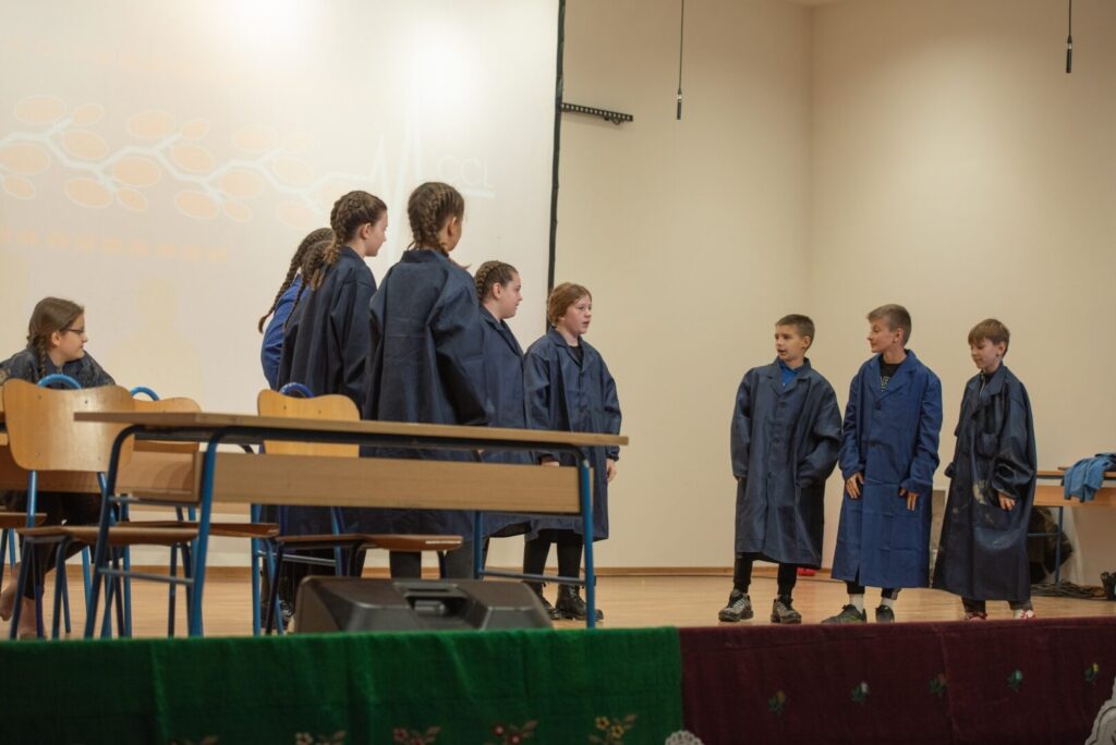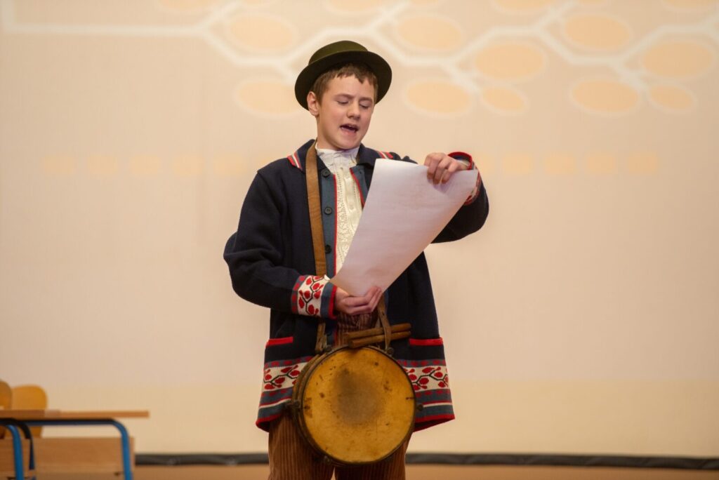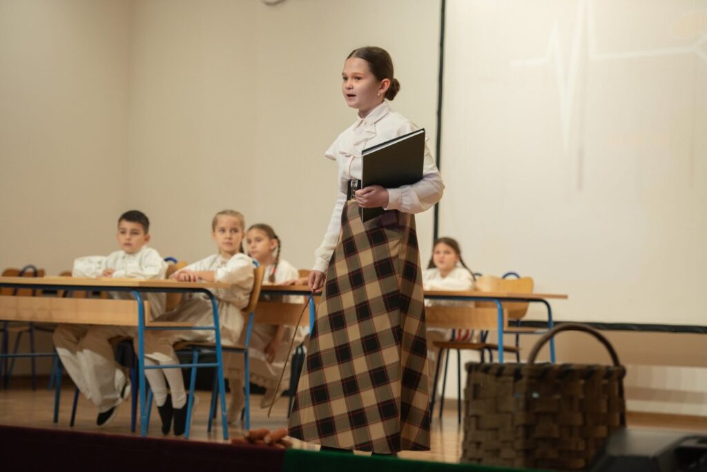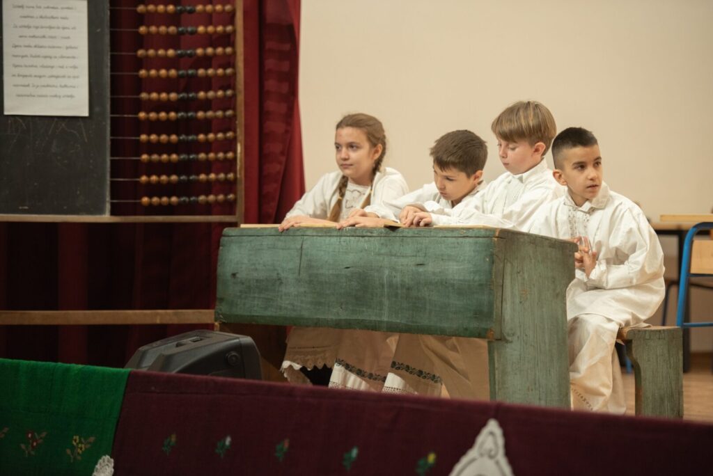 Središnji dio svečanosti bio je scenski program učenika koji je kroz tri razdoblja prikazao život škole – od šibe i pločica, preko kuta i klikera, do mobitela i videoigara. Učenici su, uz pomoć učitelja, dočarali svakodnevicu nekadašnjih đaka: igre na školskom dvorištu, siromaštvo, težak seoski rad, ali i humor, zajedništvo i snalažljivost.