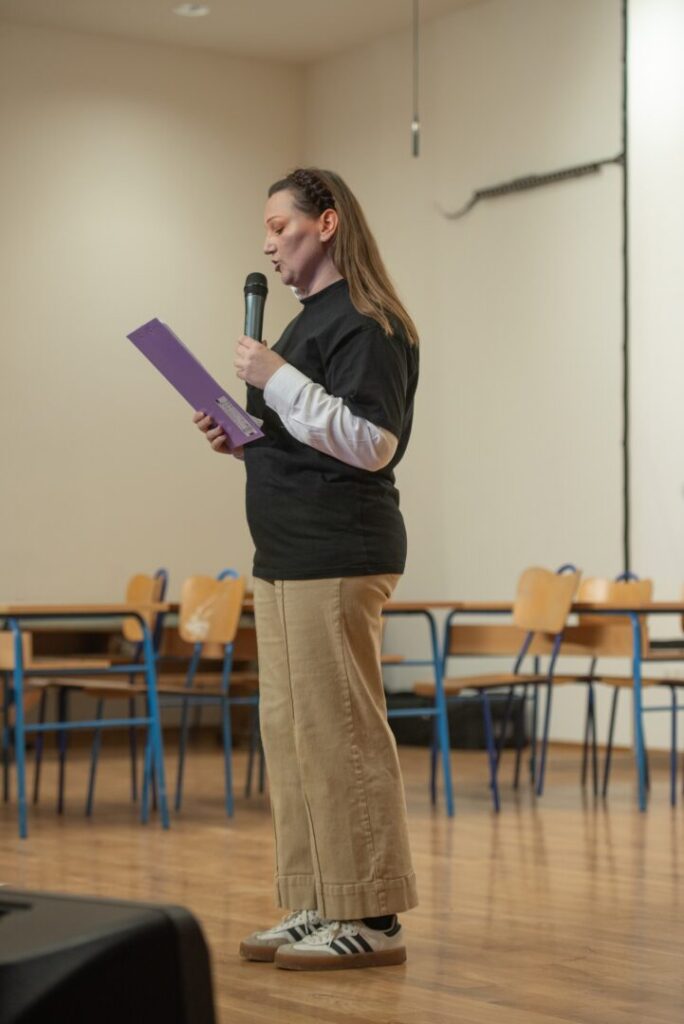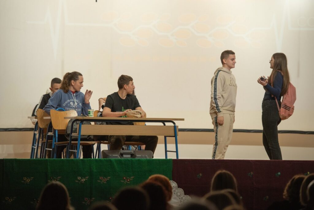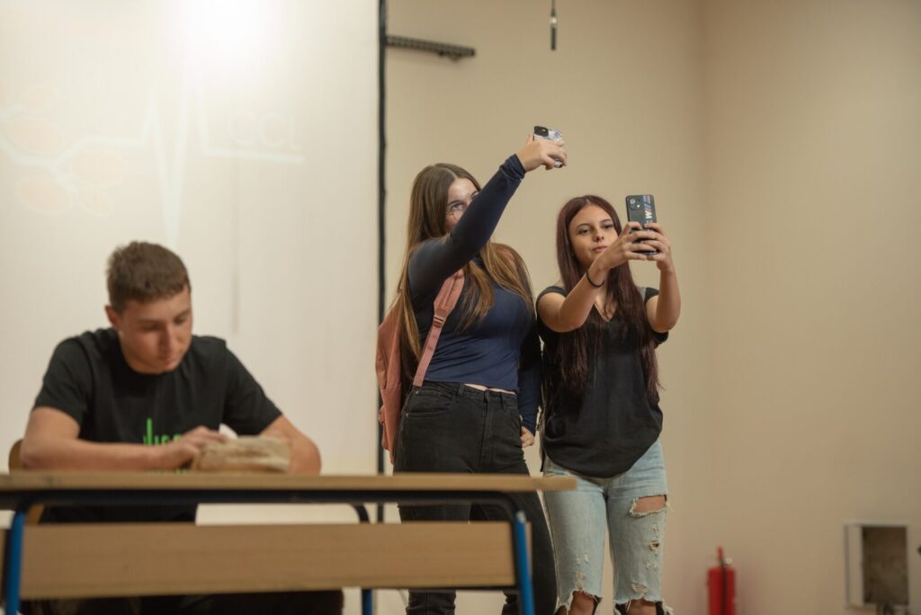 Treće razdoblje donijelo je sliku današnje učionice u kojoj učenici dolaze s mobitelima, laptopima, energetskim pićima i društvenim mrežama. Kroz duhovite dijaloge publika je vidjela izazove suvremenog odrastanja: manje čitanja, više ekrana, ali i mogućnosti koje donosi moderna tehnologija.