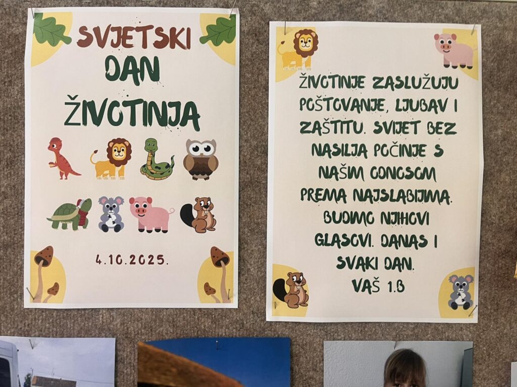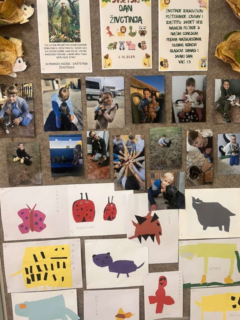 Danima smo obilježavali ovu svečanost slušajući životinjske priče, rješavajući raznorazne nastavne listiće o životinjama te razgovarali o našim kućnim ljubimcima i fotografirali se s njima. Izrađivali smo jesenskog ježa, slikali životinje kolaž papirom, tetovirali se i pjevali pjesmu o životinjama. Ističemo važnu poruku: „Životinje zaslužuju poštovanje, ljubav i zaštitu. Svijet bez nasilja počinje s našim odnosom prema najslabijima. Budimo njihovi glasovi. Danas i svaki dan.
